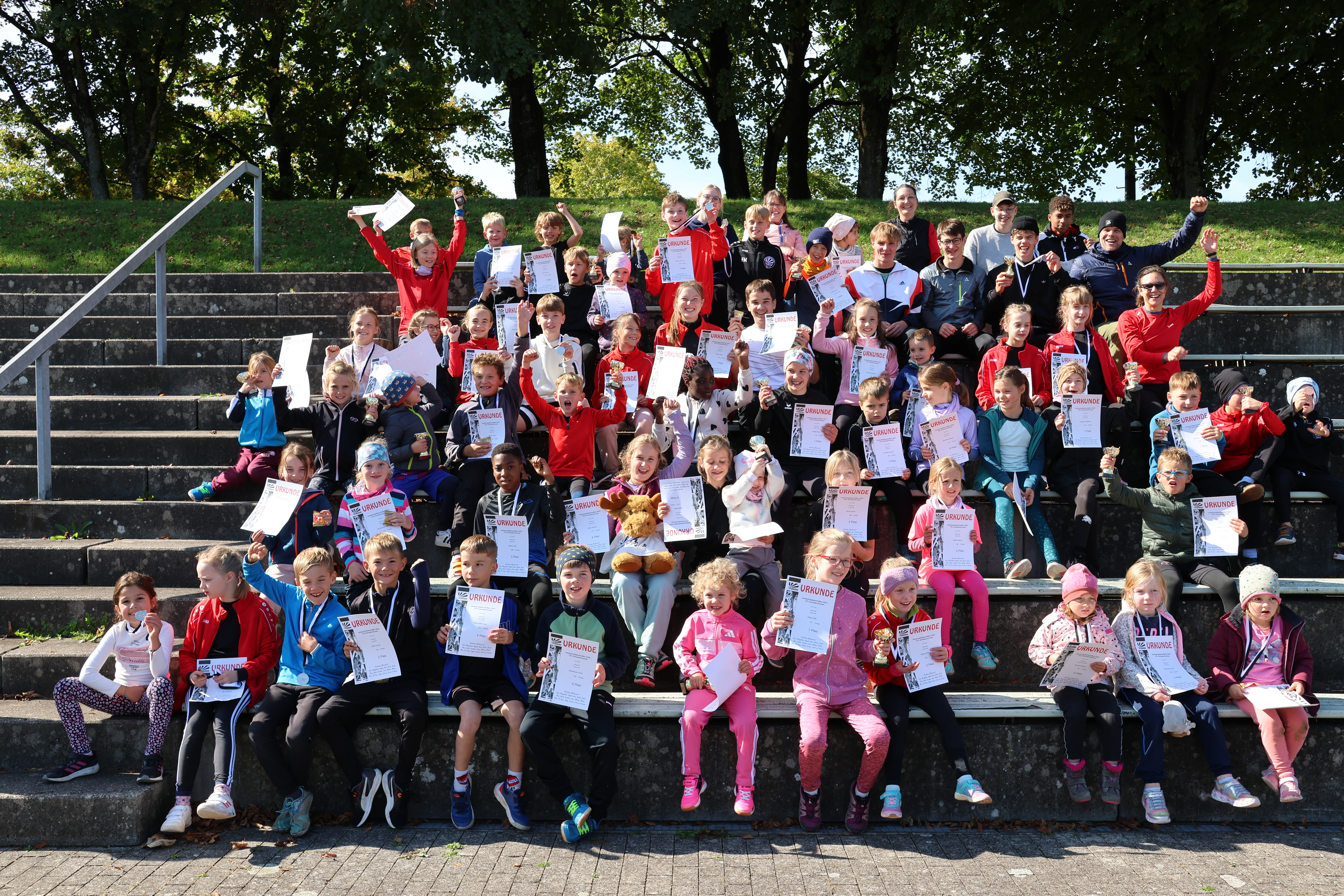 Die alljährlichen Vereinsmeisterschaften der Schülerinnen und Schüler fand in diesem Jahr am Tag der Deutschen Einheit statt. Und das bei bestem Herbstwetter, wenn auch etwas frischeren Temperaturen. Der Leichtathletik Nachwuchs ließ sich davon aber noch groß beeindrucken und so purzelten vor allem bei den Jüngsten durchaus einige persönliche Bestmarken. Rund 70 Kids ermittelten im Dreikampf die Vereinsmeister der jeweiligen Altersklassen zwischen 2 und 15 Jahren. Mit einem kalten, elterngespendeten Büffet und der großen Siegerehrung fand die Veranstaltung einen gelungenen Ausklang. Die Ergebnisse findet ihr HIER